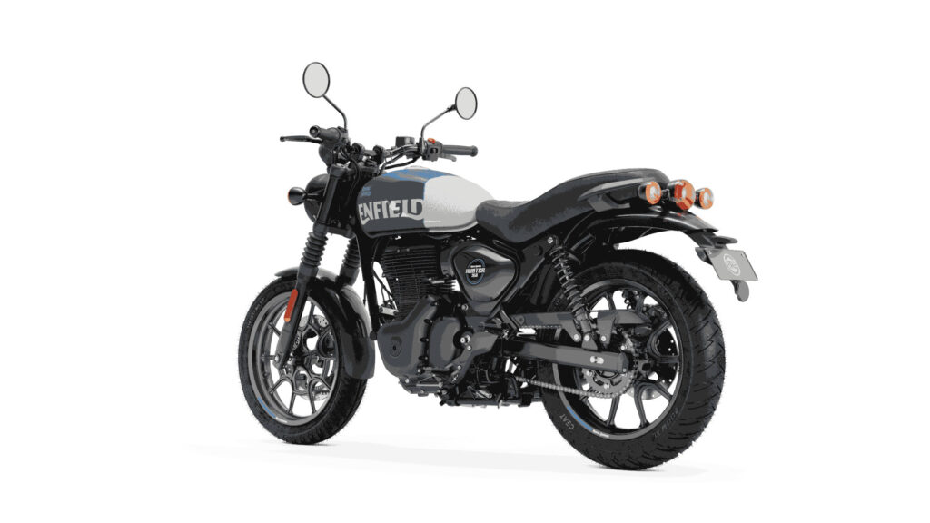 La Hunter 350 es un derivado de sus parientes Meteor 350 y Classic 350, se presenta con un diseño inspirado en modelos retro, pero sin dejar de lado un estilo moderno. Esto puede verse en algunos puntos, como el chasis y otros componentes.