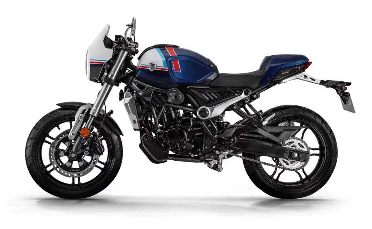 El cobertor del faro delantero circular se destaca, con un acabado superior y algo elevado para remarcar el estilo café racer. Además, el tanque de combustible redondo y el colín ancho, junto al asiento bajo y plano, terminan de redondear la estética y dan un toque clásico al conjunto. Otro detalle que llama la atención es el reemplazo del manillar por dos semimanillares, el nuevo silenciador de escape y el portamatrícula modificado.