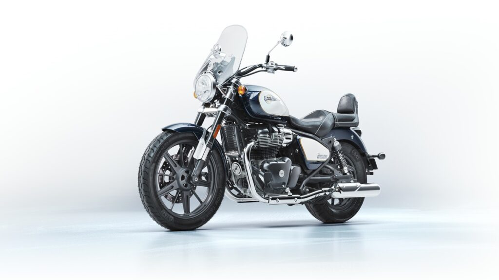 Tal cual se decía antes, la Super Meteor 650 ofrece distintos aditamentos según la versión. La moto puede incluir desde un asiento doble, reposapiés deluxe, maletas de larga distancia hasta espejos retrovisores premium.