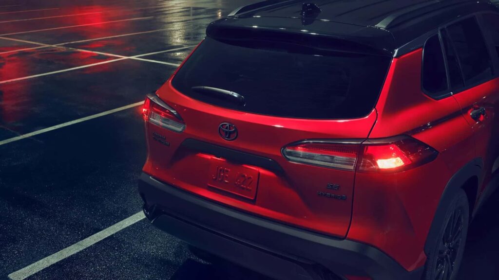 El Corolla Cross Nightshade toma de base la configuración SE híbrida y añade detalles en negro al exterior, faros nuevos, carrocería en tono Jet Black o Barcelona Red, techo también con posibilidad de color Jet Black o Celestite Grey. También aparecen llantas 18 pulgadas en negro brillante, entre otros detalles. Puertas adentro aparecen butacas especiales revestidas en tela negra y roja, con costuras rojas.