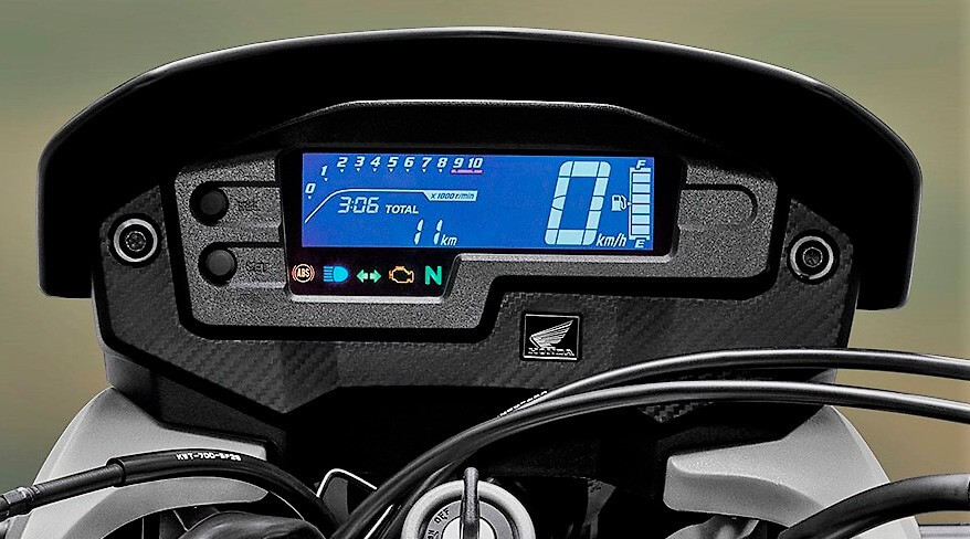 En equipamiento, la Honda XRE 300 Rally cuenta con un panel totalmente digital que ofrece velocímetro, odómetro parcial y total, marcador de nivel de combustible, cuentavueltas, reloj y luces espías. Esta on-off suma porta equipaje integrado, lo que posibilita transportar equipaje de manera más cómoda y segura. El asiento de la Honda XRE 300 Rally privilegia la ergonomía, garantizando comodidad para el piloto y el pasajero.