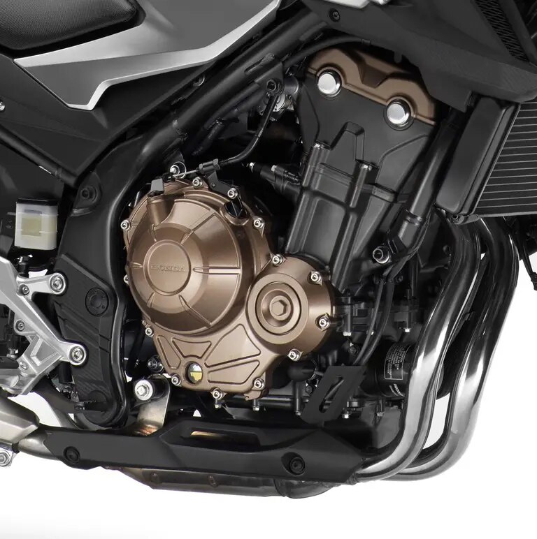 El corazón de esta Sport es un motor bicilíndrico en línea, 4 tiempos, 8 válvulas, DOHC, refrigeración por líquido y un chasis tubular liviano. Esta distribución permite que la Honda CB500F equilibre su peso, lo que se traduce en mayor estabilidad y agilidad, tanto en ciudad como en ruta. La transmisión es de seis velocidades. La potencia màxima alcanza los 53 CV a 8.500 rpm.