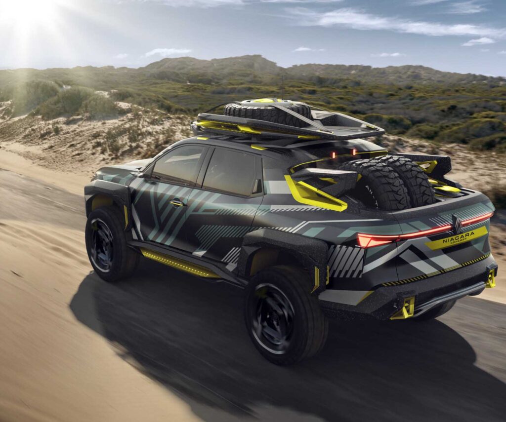 Basado en la nueva plataforma extremadamente flexible del Renault Group, el Niagara Concept ofrece un excelente confort a bordo. La motorización es eficiente gracias a la tecnología E-Tech Hybrid 4×4 y un doble ajuste técnico: la motorización mild hybrid advanced (48 v) en la parte delantera, complementada por un motor eléctrico adicional en la parte trasera. Por eso, el Niagara Concept es un modelo 4×4 con rendimiento off-road optimizado. Esta motorización permite cubrir la mitad de los trayectos diarios en el modo 100 % eléctrico, con una reducción equivalente en las emisiones de CO2.