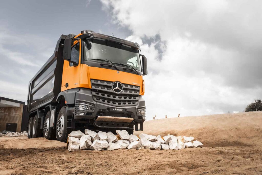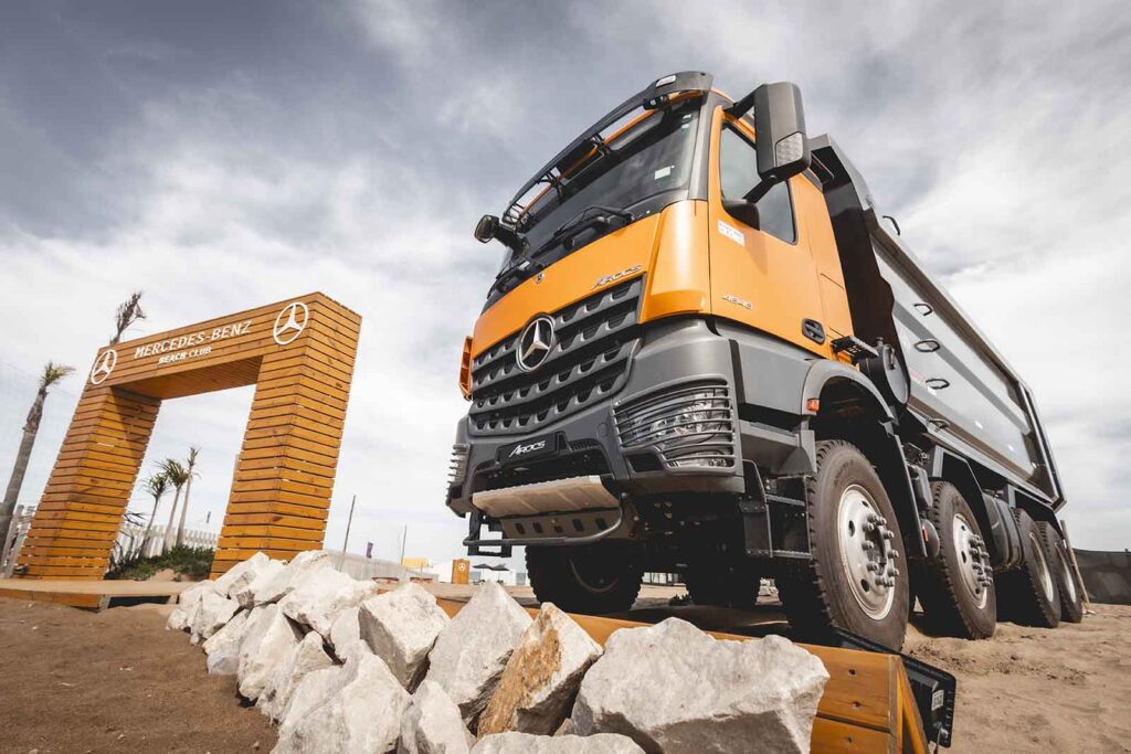 Desde su stand en la costa argentina, Mercedes-Benz Camiones y Buses presentó en sociedad al camión Arocs 4848 K con fórmula de tracción 8×4. Diseñado para aplicaciones como volcador y mixer, principalmente, el Arocs se posiciona como el aliado ideal en las industrias de minería y construcción.
