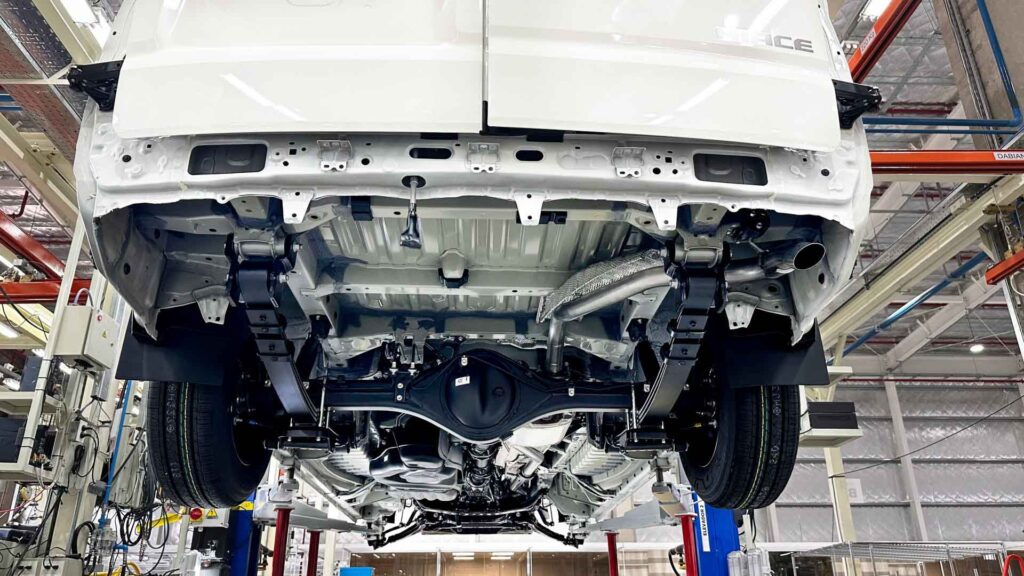 Hiace está fabricada sobre una plataforma autoportante de estructura anular, que le confiere al vehículo una alta resistencia a la torsión que asegura un nivel de performance dinámica superior y durabilidad en todas las condiciones de carga.