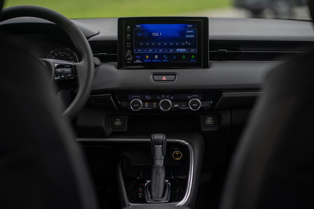 El Honda HR-V también ofrece control de velocidad crucero adaptativo (ACC) con limitador de velocidad, función de seguimiento a baja velocidad (LSF), sistema de conservación de carril (LKAS) y alerta de cambio de carril (LDW). Entre su equipamiento e ítems destacados se encuentran: display y audio con pantalla multimedia de 8″ con Apple Carplay y Google Android, cargador de celular inalámbrico, sensor de lluvia, faros antiniebla, sensores de estacionamiento traseros, espejo interior anti encandilamiento, asientos de cuero, salidas de aire en plazas traseras, entre otros.