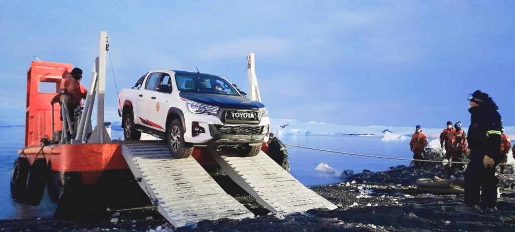 Una nueva pick-up Hilux llegó a la Antártida como parte de la extensa relación de cooperación entre Toyota Argentina y el Comando Conjunto Antártico. Es la sexta Hilux en pisar suelo antártico desde que en 2002 arribó la primera, y esta vez fue destinada a la Base Antártica Petrel para las actividades diarias de científicos y la dotación de operación en condiciones climáticas extremas.