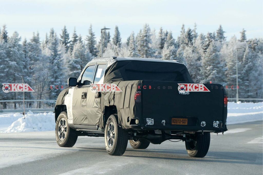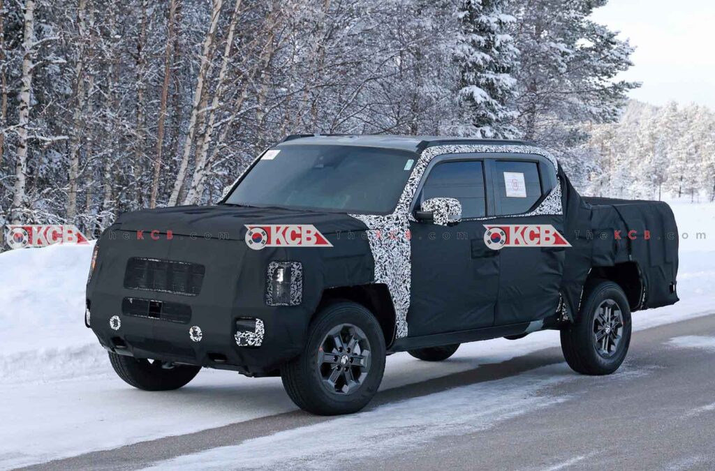 Gracias al rápido disparo de los paparazzis se pudo ver a la Kia Tasman en plenas pruebas. La pick-up estaba cubierta por el camuflaje de pruebas, pero de todas formas deja ver que tendrá un frontal bien marcado, alto y con los faros verticales como uno de los recientes lanzamientos de Kia, el EV9.