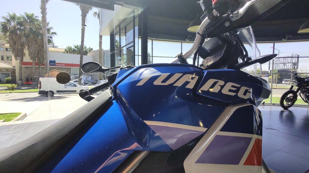 A nivel diseño la Aprilia Tuareg 660 muestra en sus líneas el ADN del Dakar, dejando en claro que es una auténtica moto hecha para la aventura y el off-road. Además, las distintas configuraciones de colores en la moto recuerdan aún más a la mítica competencia de rally.