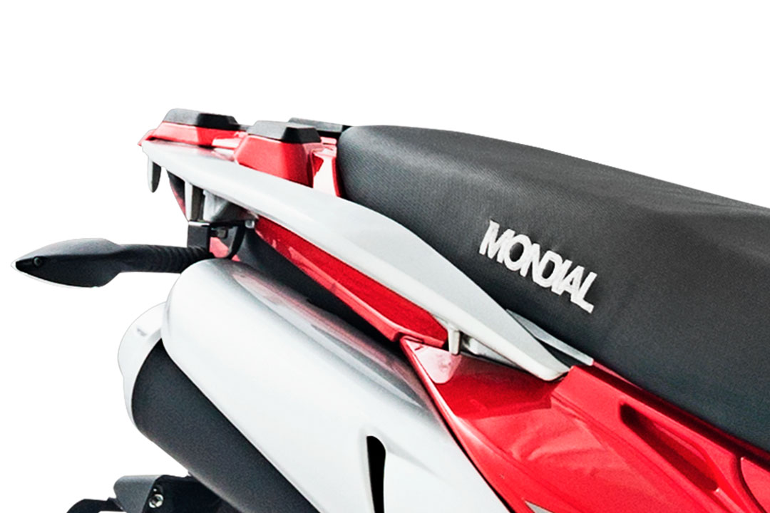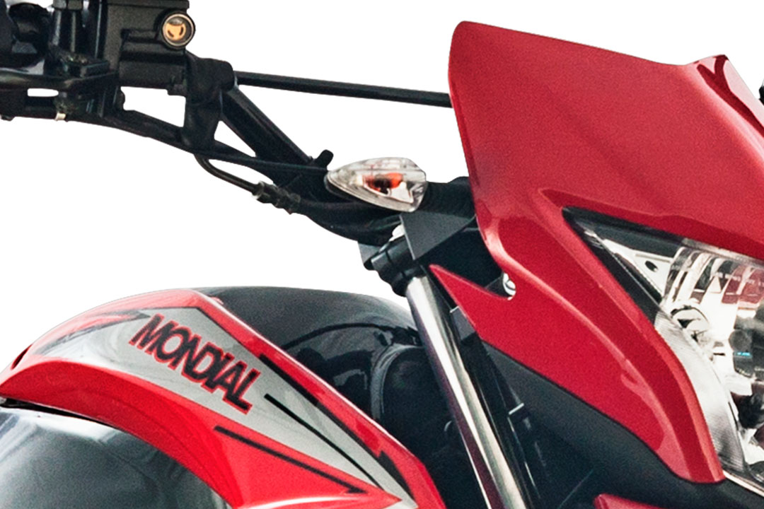 Esta moto de Mondial se presenta con un motor monocilíndrico 4T, CDI con avance electrónico y una cilindrada de 150 cc. Su refrigeración es por aire y está asociado a una caja de 5 velocidades.