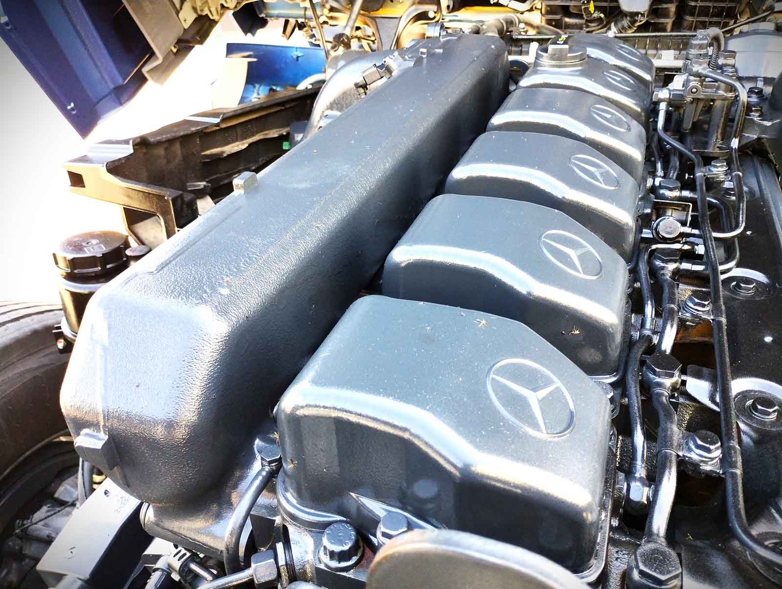 Equipado con un motor OM 460 de 12,8 litros de cilindrada: 476 CV, 2.300 Nm con freno motor Top Brake, este camión garantiza un rendimiento superior incluso en las condiciones más exigentes. También, optimiza el consumo de combustible al reducir el régimen de rotación del motor, beneficiando tanto la economía operativa como la sostenibilidad ambiental.