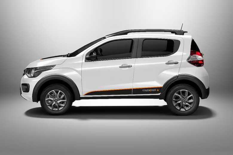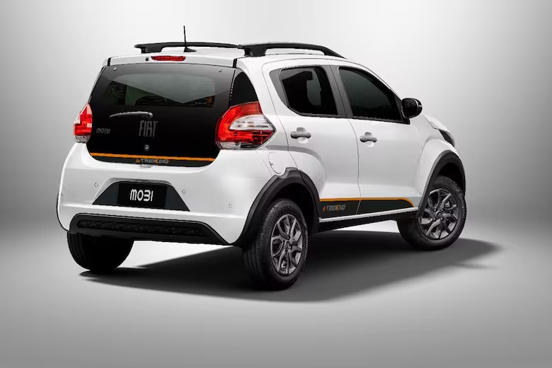 El nuevo Mobi Trekking 1.0 MT5 está equipado con llantas de aleación de 14 pulgadas y barras longitudinales que facilitan el transporte de equipaje adicional. Además, cuenta con luces diurnas DRL y faros antiniebla delanteros con máscara oscura. Las manijas de las puertas y los paragolpes están pintados del mismo color que la carrocería, mientras que los espejos laterales, en negro piano, incorporan luz de giro y la función Tilt Down. Esta última mejora la visibilidad durante el estacionamiento, inclinándose automáticamente hacia abajo al poner marcha atrás.