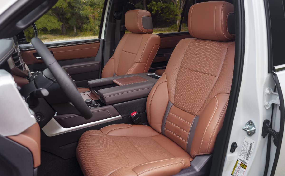 El nivel SR5 Premium añade una central multimedia Toyota de 14 pulgadas, tercera fila de asientos eléctricos, portón trasero con apertura automática, asientos tapizados en cuero específico y tomas de corriente de 120 voltios tanto en el habitáculo como en el espacio de carga. Además, el SR5 puede incorporar el paquete TRD Sport, que mejora su desempeño general mediante llantas de aleación en negro mate de 20 pulgadas, amortiguadores Bilstein monotubo con resortes reforzados, pedalera de aluminio y un botón de arranque personalizado.