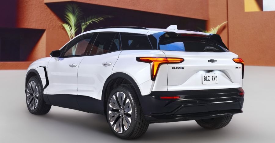 El diseño exterior del Blazer EV incluye un emblema central con iluminación LED, luces exteriores Full LED y faros IntelliBeam que activan automáticamente las luces altas. El modelo viene con llantas de 21 pulgadas con diseño Energy Saver, detalles en negro brillante y un techo panorámico que incluye apertura y ventilación. El baúl se puede abrir de manera eléctrica al detectar la presencia del conductor, facilitando el acceso al compartimiento trasero.