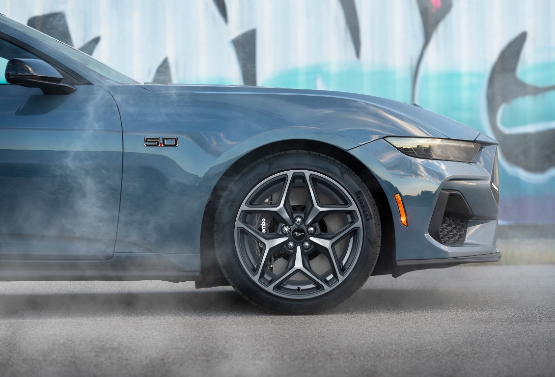 Tanto los faros delanteros como los traseros son ahora Full LED, proporcionando una iluminación más eficiente mientras conservan el formato de tres barras, un sello distintivo del Mustang. La nueva entrada de aire central en el capot favorece la aerodinámica, al igual que la parrilla frontal, decorada en negro brillante. Las llantas de aleación son de 19”.