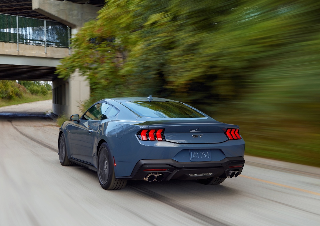 La séptima generación del Mustang estará disponible en tres colores: Negro Ebony, Azul Vapor y Gris Mercurio, y llegará a los concesionarios locales durante noviembre próximo.