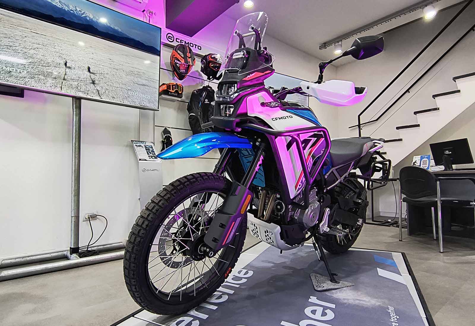 La CFMoto se presenta entre dos versiones de colores: Tundra Grey y Zephyr Blue, con opción de configurar el guardabarros a su preferencia.
