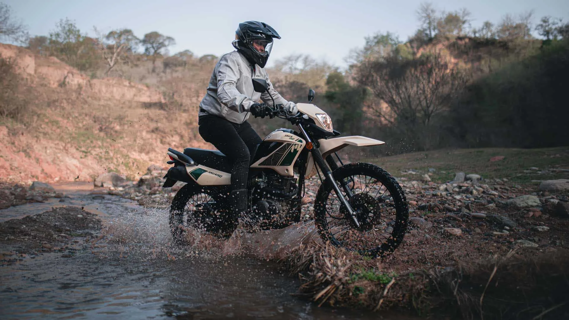 La estructura y el chasis están fabricados para soportar los desplazamientos en terrenos mixtos sin perder estabilidad, ofreciendo una conducción ágil en curvas y maniobras. Con 210 cm de largo, 77 cm de ancho y 90 cm de altura, esta motocicleta ofrece una buena altura al suelo y un tamaño adecuado para diferentes contextos de uso.