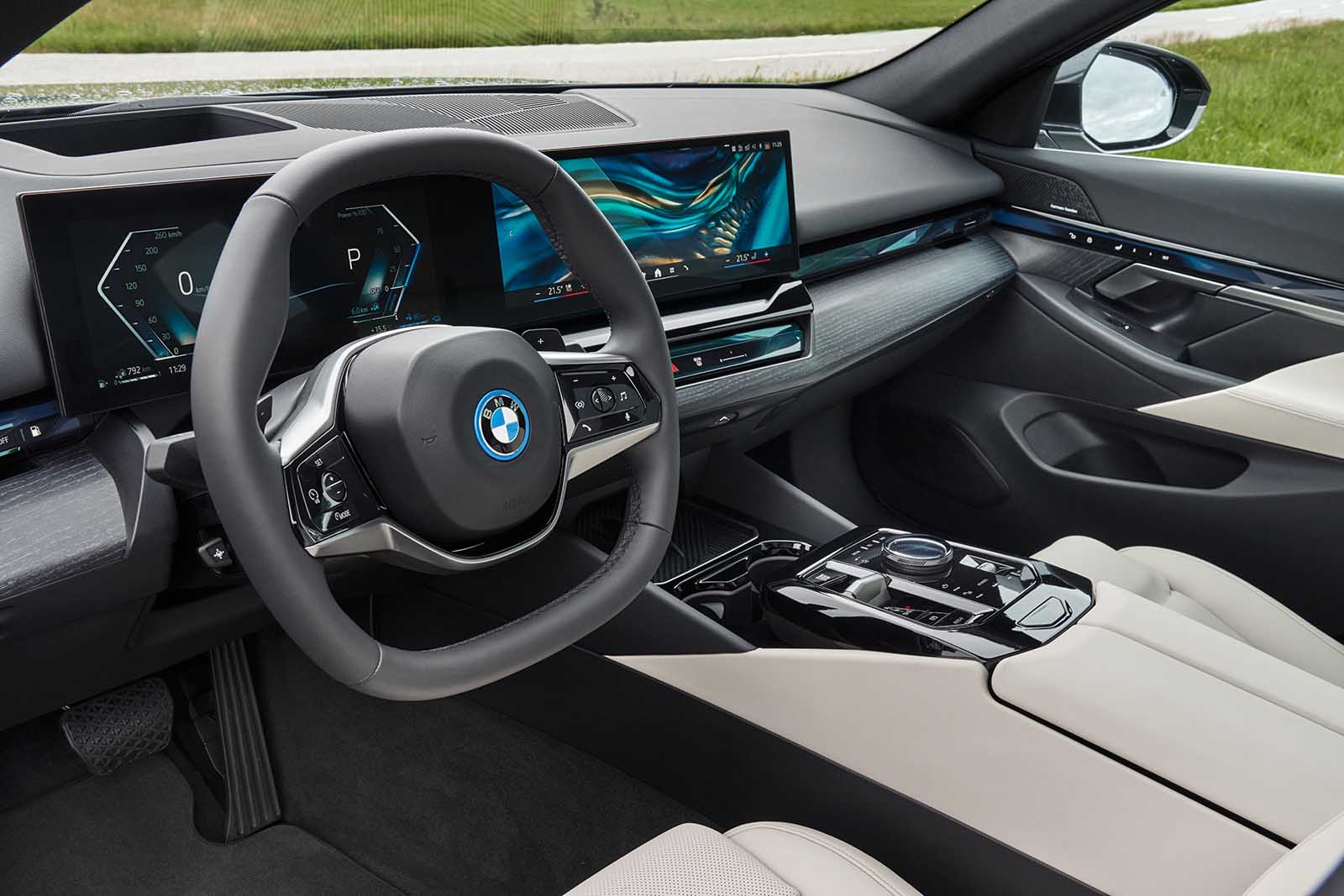 Puertas adentro el nuevo BMW Serie 5 ofrece la combinación perfecta entre confort y tecnología. El espacio es generoso, toma mayor protagonismo la digitalización (incluye el BMW Curved Display con tablero de 12.3” y pantalla de control de 14.9” y presenta menos botones), y abundan los materiales de alta calidad elaborados con precisión y mano de obra fina, como los tapizados en alcántara y cuero vegano Veganza o los detalles en madera noble de fresno.
