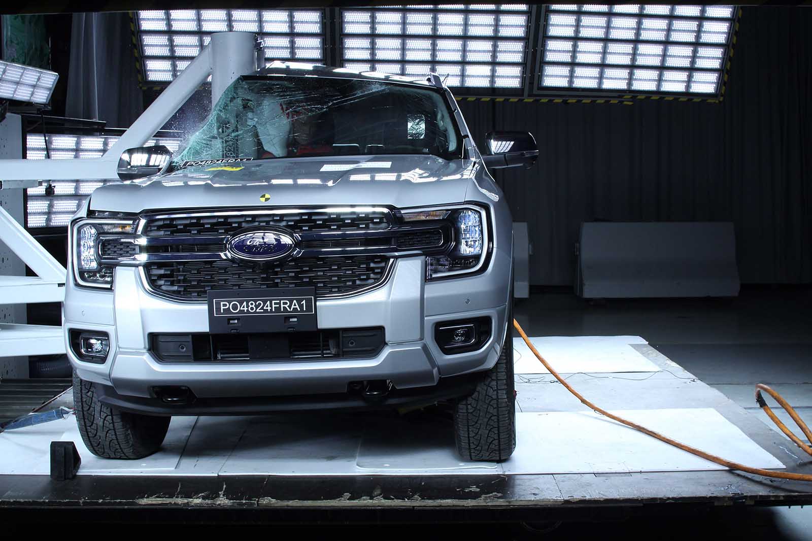El impacto frontal en la nueva Ford Ranger mostró estructura y área de los pies estables, protección adecuada para el pecho de los adultos, protección total en el impacto lateral, protección adecuada para el pecho y el abdomen en el impacto lateral de poste y protección total para los ocupantes infantiles tanto en impacto frontal como en el impacto lateral.