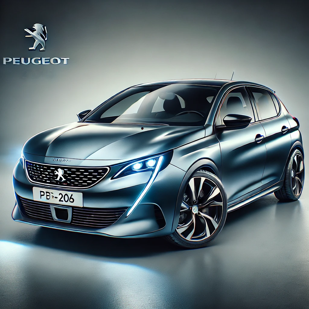 - Diseño exterior: La carrocería del nuevo 206 conservaría las líneas compactas y dinámicas que lo hicieron famoso, pero con toques contemporáneos. El frente incluiría faros LED estilizados, una parrilla más amplia con detalles cromados y un logo actualizado. En la parte trasera, se mantendría el perfil deportivo, pero las luces se modernizarían con tecnología LED en forma de barras horizontales. Las llantas de aleación serían de 17 pulgadas, con acabados en tonos metalizados y negro brillante.
