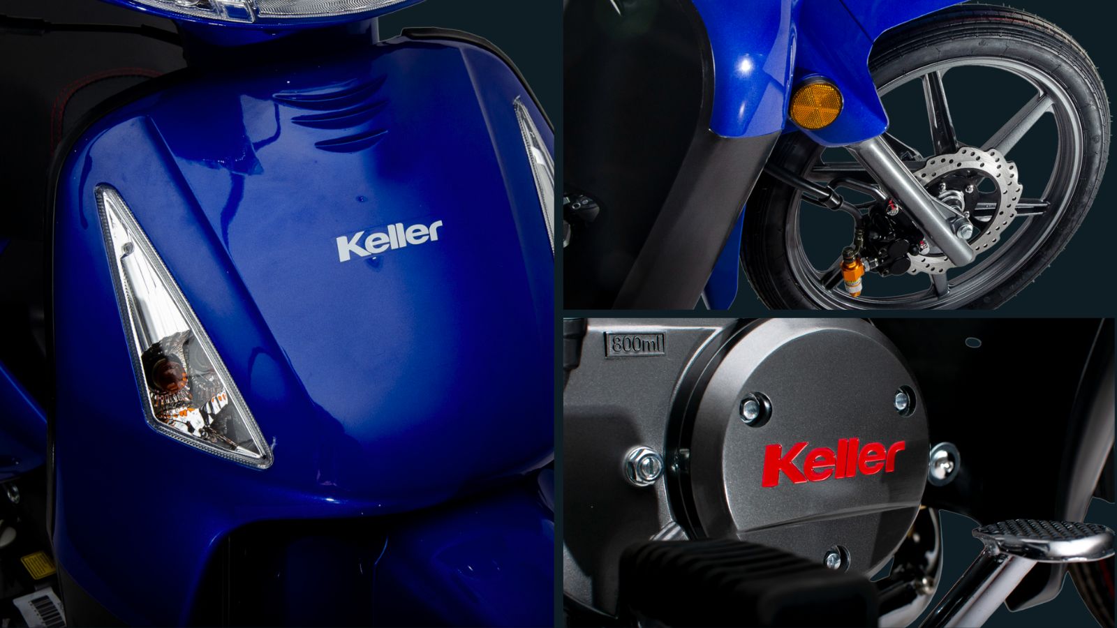 La Keller Cronos 110 es impulsada por un motor monocilíndrico de 107 cc, que ofrece una potencia máxima de 7 HP a 8000 rpm. Su transmisión de 4 velocidades, junto con un embrague multidisco en baño de aceite semi automático, permiten una experiencia fluida. En cuanto su arranque, se puede realizar de manera eléctrica o por patada.
