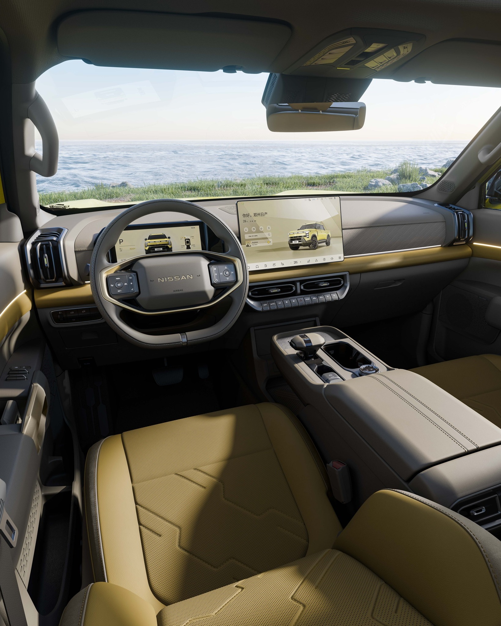 La flamante Frontier fue desarrollada en colaboración con la china Dongfeng y mantiene el tradicional chasis de largueros, aunque su diseño exterior e interior marca una evolución radical. Por fuera, se destaca un lenguaje estético completamente nuevo, con líneas robustas y modernas, mientras que en el habitáculo domina un enfoque minimalista con pantallas digitales de 10 y 14,6 pulgadas, techo panorámico y asientos premium con funciones de calefacción, refrigeración y masaje.