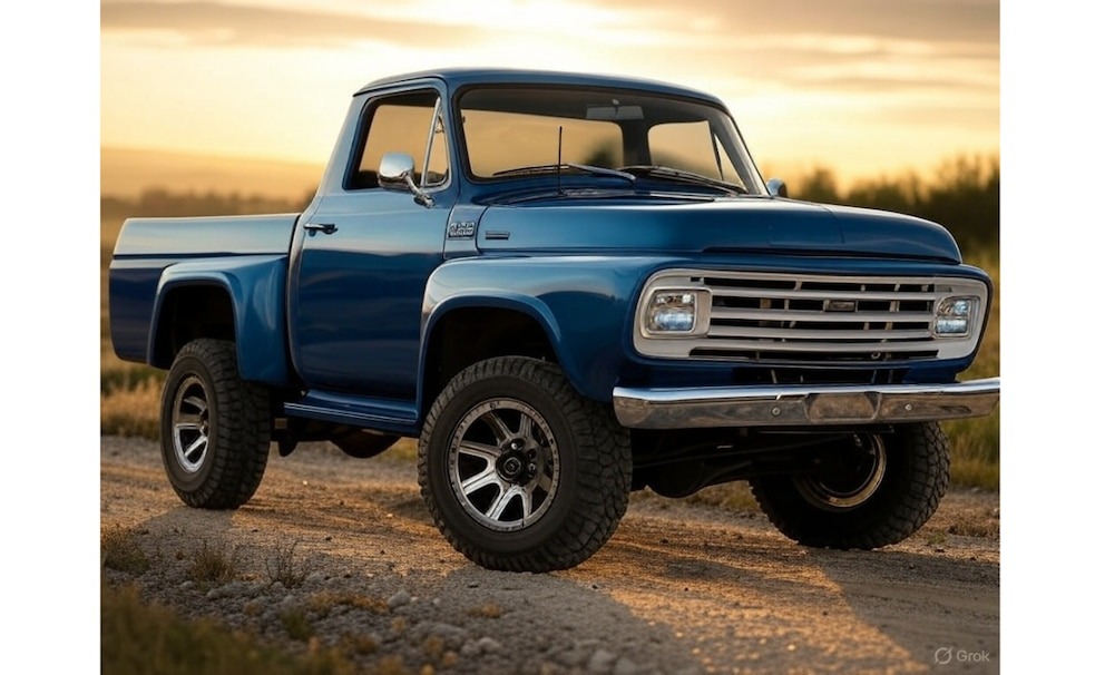 Un concepto generado por Grok, el sistema de IA desarrollado por xAI (la empresa de Elon Musk), propone una versión 2025 de la F-100 que conjuga lo mejor de dos mundos: diseño vintage con tecnología actual y opciones mecánicas alineadas con las tendencias globales de electrificación.