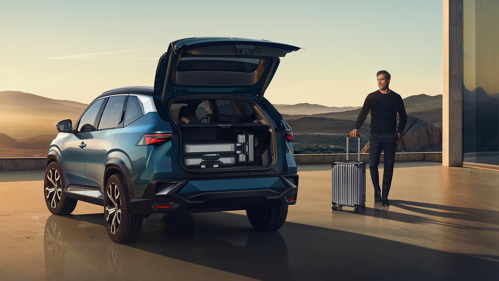 Con sus 4,56 metros de largo y 1,84 metros de ancho, el Renault Boreal se posiciona en el corazón del segmento C-SUV, ofreciendo proporciones atractivas. Su silueta tiene volúmenes equilibrados, gracias a una mayor distancia entre ejes (2,70 m) y a voladizos cortos, lo que se traduce en un amplio espacio interior y una imagen visual dinámica. Con una altura de 1,65 metros, el techo del Renault Boreal está ligeramente inclinado, junto a una superficie vidriada continua y un discreto acabado en el techo, le otorgan un aspecto fluido y ágil, sin comprometer el espacio interno.