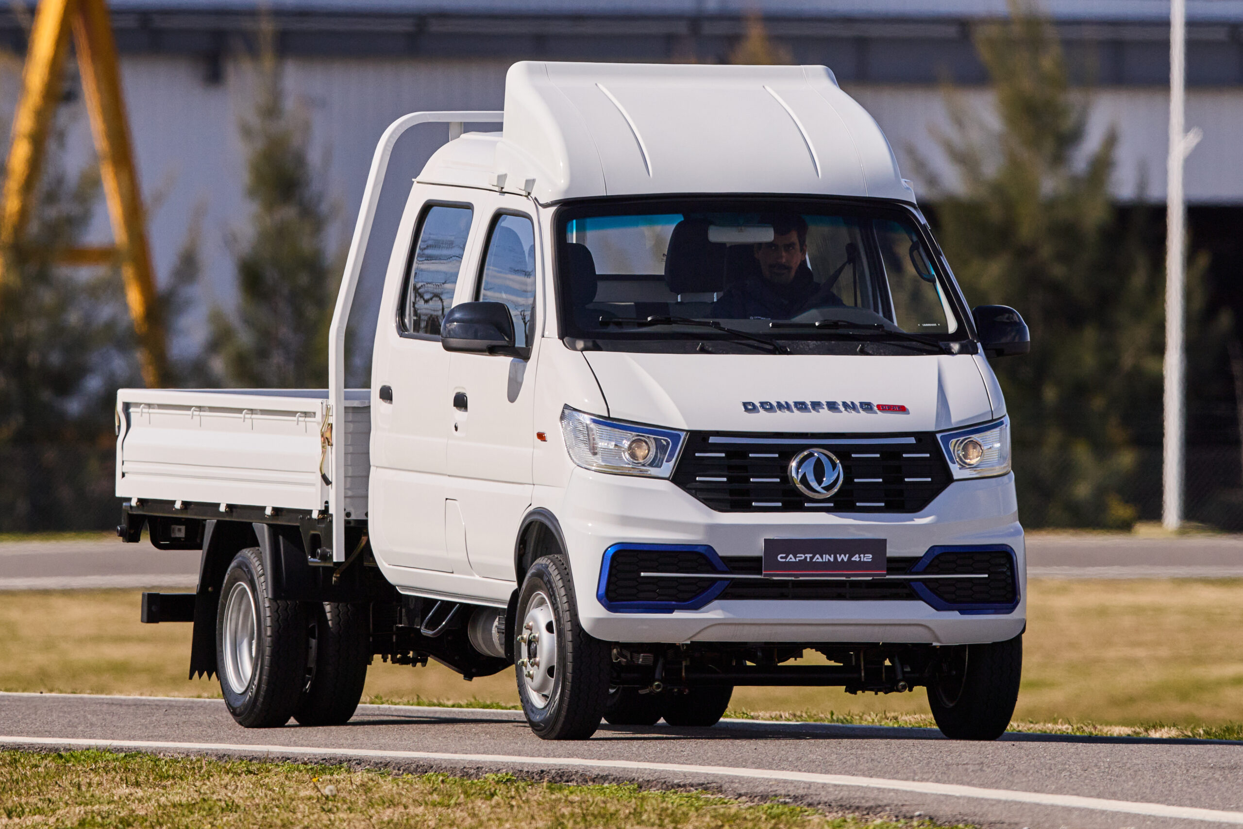Dongfeng aterriza con una oferta que cubre distintas escalas operativas. En la categoría ultraliviana, la familia Captain W apunta a la logística de última milla. Con un diseño compacto, pensado para el tránsito urbano y recorridos cortos, incluye el modelo CAPTAIN W 310, disponible en cabina simple o doble, equipado con motor Wuling 1.3 naftero de cuatro cilindros (90 hp y 118 Nm) y capacidad de carga de hasta 1.100 kg. También se suma el CAPTAIN W 412, con motor Wuling 1.6 de 122 hp y 161 Nm, que eleva la capacidad de carga hasta 2.045 kg en cabina simple. Ambos cuentan con aire acondicionado, cámara de retroceso, pantalla multimedia y opciones como deflector de techo.