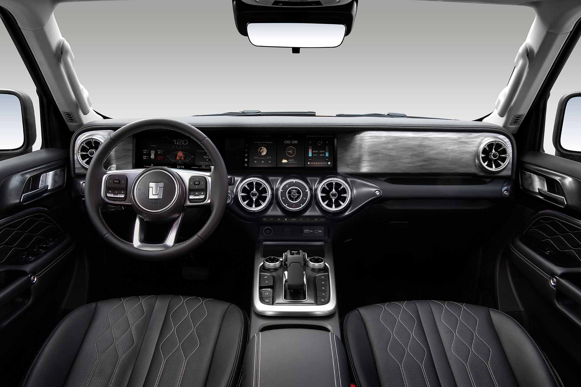 Puertas adentro, el GWM Tank 300 ofrece un elevado nivel de confort y tecnología: se destaca el volante multifunción tapizado en cuero con levas al volante, los asientos de cuero Nappa con ajuste eléctrico (conductor en 8 direcciones y pasajero en 4), calefaccionados y ventilados, con soporte lumbar para el conductor. La segunda fila es abatible en proporción 60:40 y ofrece respaldo ajustable en dos posiciones.
