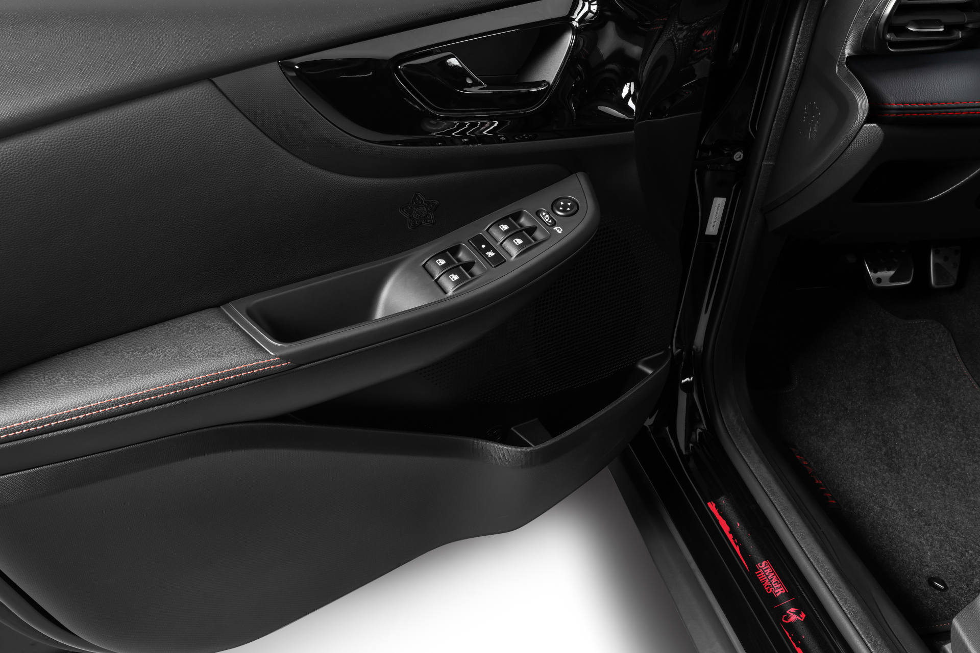 En el exterior, la serie especial ganó una tira adhesiva en los laterales que representa las garras del Demogorgon, el monstruo de la serie, acabado skidplate (parrilla inferior), cortina de aire y espejos retrovisores en rojo o negro (dependiendo del color de la carrocería), una placa con el nombre de la serie en el motor, umbral de puerta Stranger Things y nueva serigrafía en las ventanas, con tres easter eggs de detalles icónicos sobre la serie.
