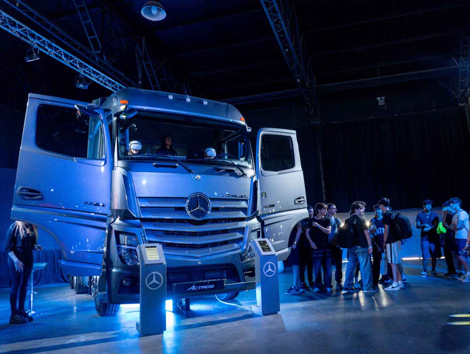 A través de cascos de realidad virtual, los visitantes pueden simular situaciones reales de conducción y experimentar cómo funcionan los sistemas inteligentes del Actros L 2663. Entre ellos se destacan el Active Brake Assist 5, que detecta obstáculos y frena automáticamente en caso de emergencia; el innovador sistema MirrorCam, que reemplaza los espejos tradicionales por cámaras digitales que mejoran la visibilidad y reducen la resistencia al viento; el control de carril, que alerta al conductor ante desvíos involuntarios; y el control de proximidad, que regula la distancia con el vehículo que circula adelante.