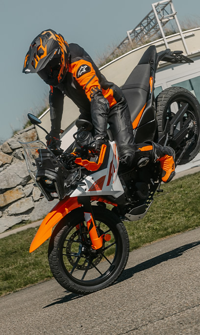 La 390 Adventure X se presenta como la opción más accesible del trío. Diseñada para quienes empiezan a explorar los viajes y la conducción mixta, combina agilidad urbana con capacidades trail básicas, manteniendo la identidad deportiva de la marca.