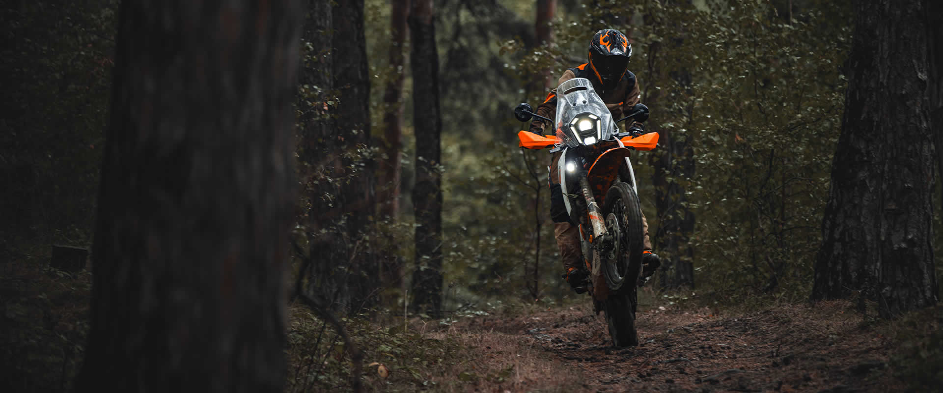 La 390 Enduro R completa la gama con un planteo distinto: una moto nacida para el off-road puro, con alma endurera pero homologada para el uso en ruta. El modelo prioriza ligereza y respuesta inmediata, acercándose al comportamiento de una máquina de competición, pero sin perder practicidad para la circulación diaria.
