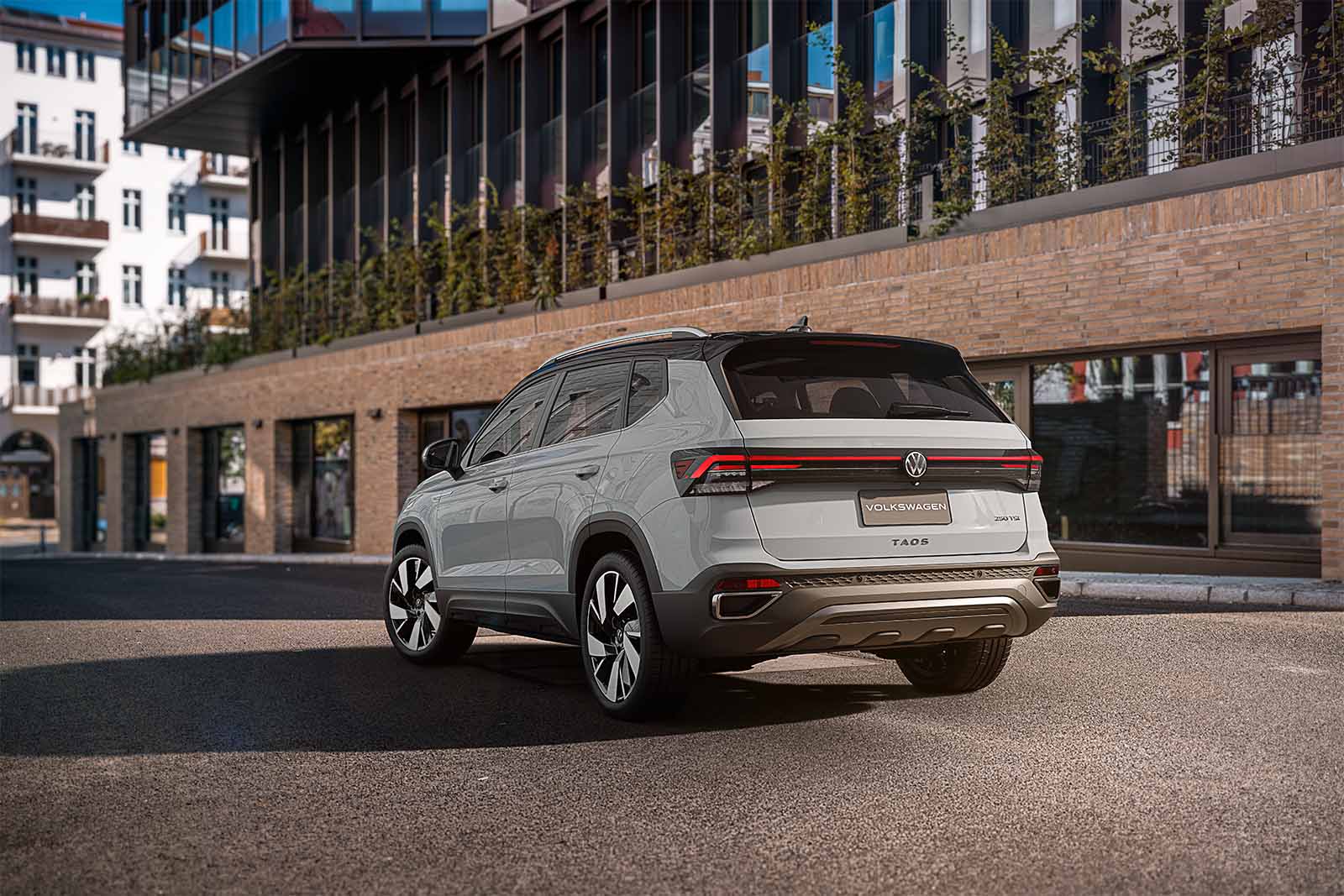 El Nuevo Taos se destaca con un diseño más audaz y expresivo. Incorpora un renovado paragolpes y una nueva parrilla donde se destacan los nuevos faros delanteros con tecnología “IQ Light”, aportándole una estética más sofisticada, una iluminación de alto rendimiento y mejorando tanto la visibilidad como la presencia del vehículo. En su lateral, el modelo conserva su marcada línea de carácter, complementada por un nuevo conjunto de llantas de aleación y barras de techo como equipamiento estándar, reforzando su estilo robusto y elegante. En su parte trasera, el Nuevo Taos presenta un rediseño de los faros traseros, que imprimen un carácter distintivo al modelo. La estética se vuelve más elegante, destacándose una barra de luz LED iluminada que conecta ambos faros, generando una firma visual continua y sofisticada. El logo trasero de Volkswagen también está iluminado, lo que refuerza la identidad del vehículo y crea un efecto visual único, sobre todo en una conducción nocturna.