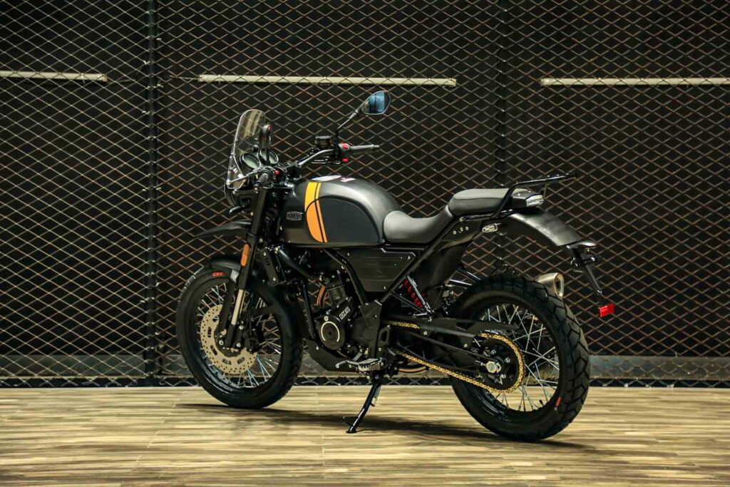 Su diseño se distingue por una estética neo-retro cuidada en cada detalle: llantas multirrayos, iluminación Full LED y tablero digital de inspiración clásica. La postura de manejo cómoda y natural favorece tanto los desplazamientos urbanos como las escapadas de fin de semana. Además, su tanque de 18 litros permite sostener trayectos largos sin resignar practicidad en el uso diario.