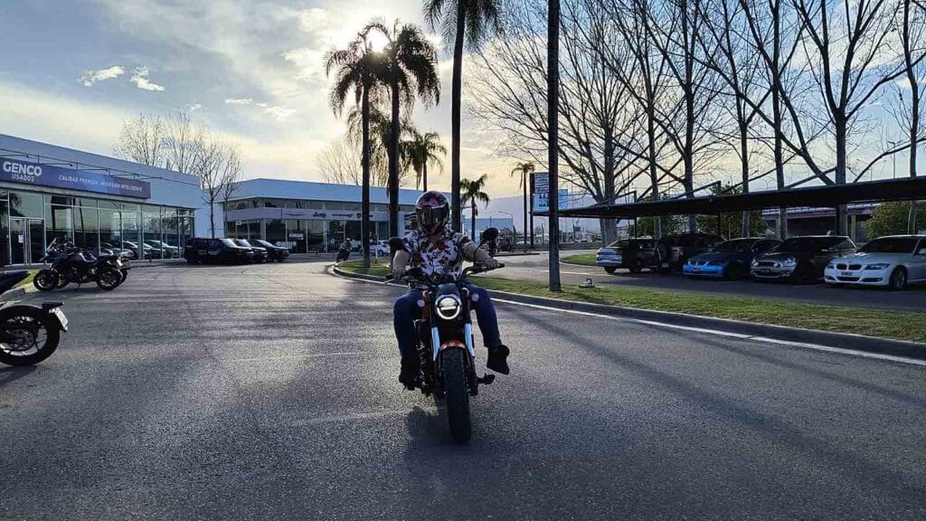 Este modelo incorpora suspensión delantera con horquillas invertidas y amortiguadores traseros hidráulicos, garantizando un buen control a velocidades elevadas y una experiencia de manejo estable. El sistema de frenado incluye discos de 280 mm delante y 240 mm atrás, ambos con frenos de disco y ABS de doble canal, aumentando la seguridad en diversas condiciones.