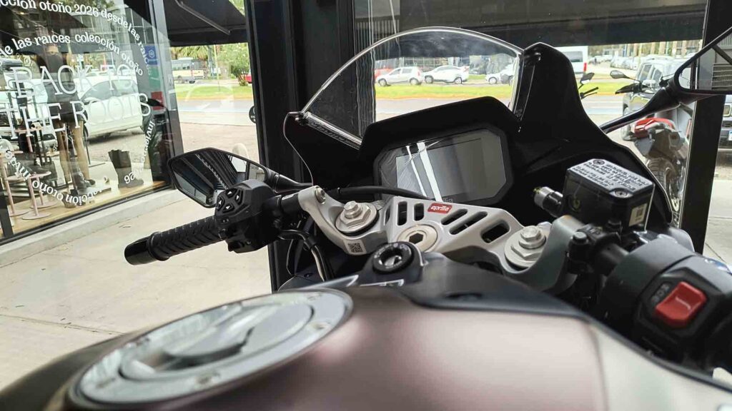 Para brindar toda su información, la Aprilia RS 457 equipa una pantalla TFT color de 5 pulgadas totalmente digital con controles retroiluminados en el manillar y compatibilidad con la plataforma Aprilia MIA para conectividad con smartphones.